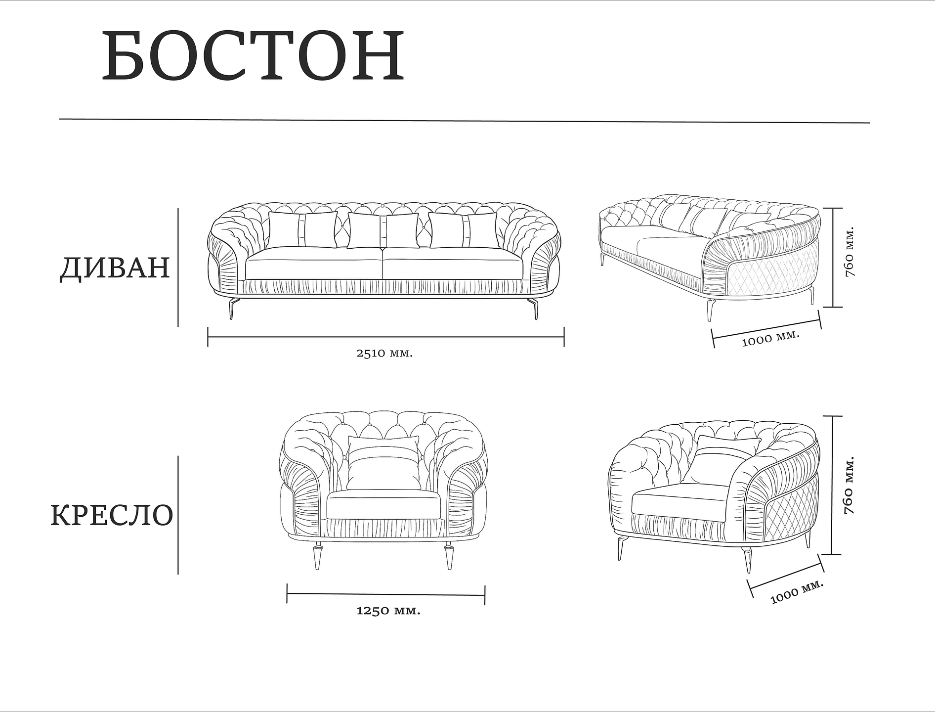 Комплект Бостон (тройка) — элегантный диван с глубокими посадочными местами и эффектной каретной стёжкой. Модель дополнена декоративными подушками и стильными металлическими ножками, которые подчеркивают современный характер. «Бостон» сочетает комфорт и изысканный дизайн, создавая атмосферу уюта и статуса в интерьере.