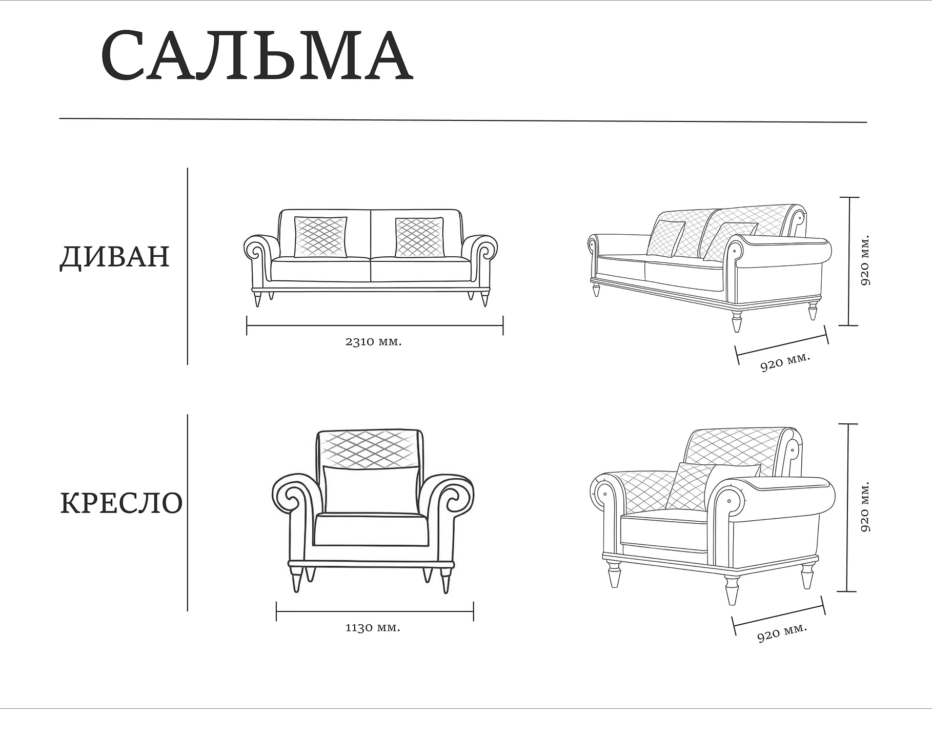 Комплект «Сальма» Стильное решение для тех, кто ценит детали. Функциональная откидная спинка создаёт комфортные условия для отдыха, буковые ножки и основание гарантируют долговечность, а металлический декор добавляет утончённый штрих в дизайн.