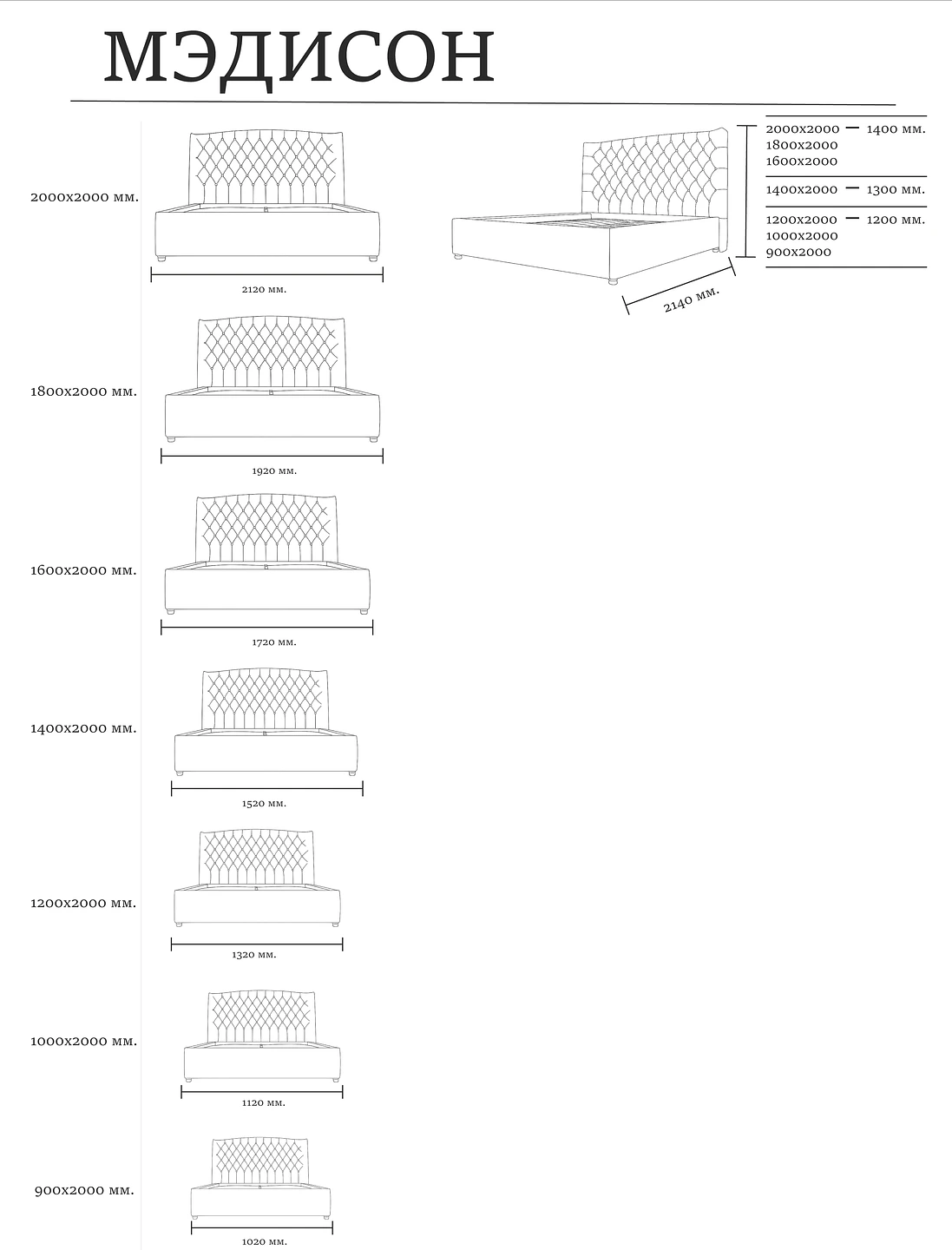 Кровать «Мэдисон» Эффектная модель с высоким изголовьем, украшенным классической каретной стяжкой. «Мэдисон» станет центром спальни, добавив в интерьер роскошь и изысканность. Основание оснащено подъемным механизмом для удобного хранения.