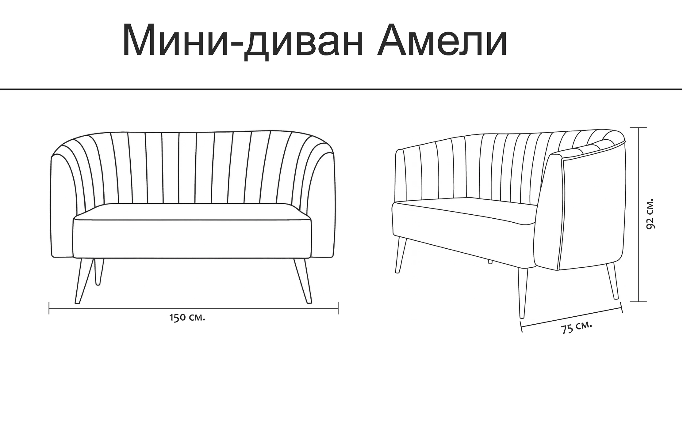 Элегантный двухместный диван с закруглённой спинкой и вертикальной стёжкой. Изящные золотистые ножки подчёркивают стиль и утончённость модели. Подходит для дома, магазинов, ресторанов, кафе и зон ожидания.