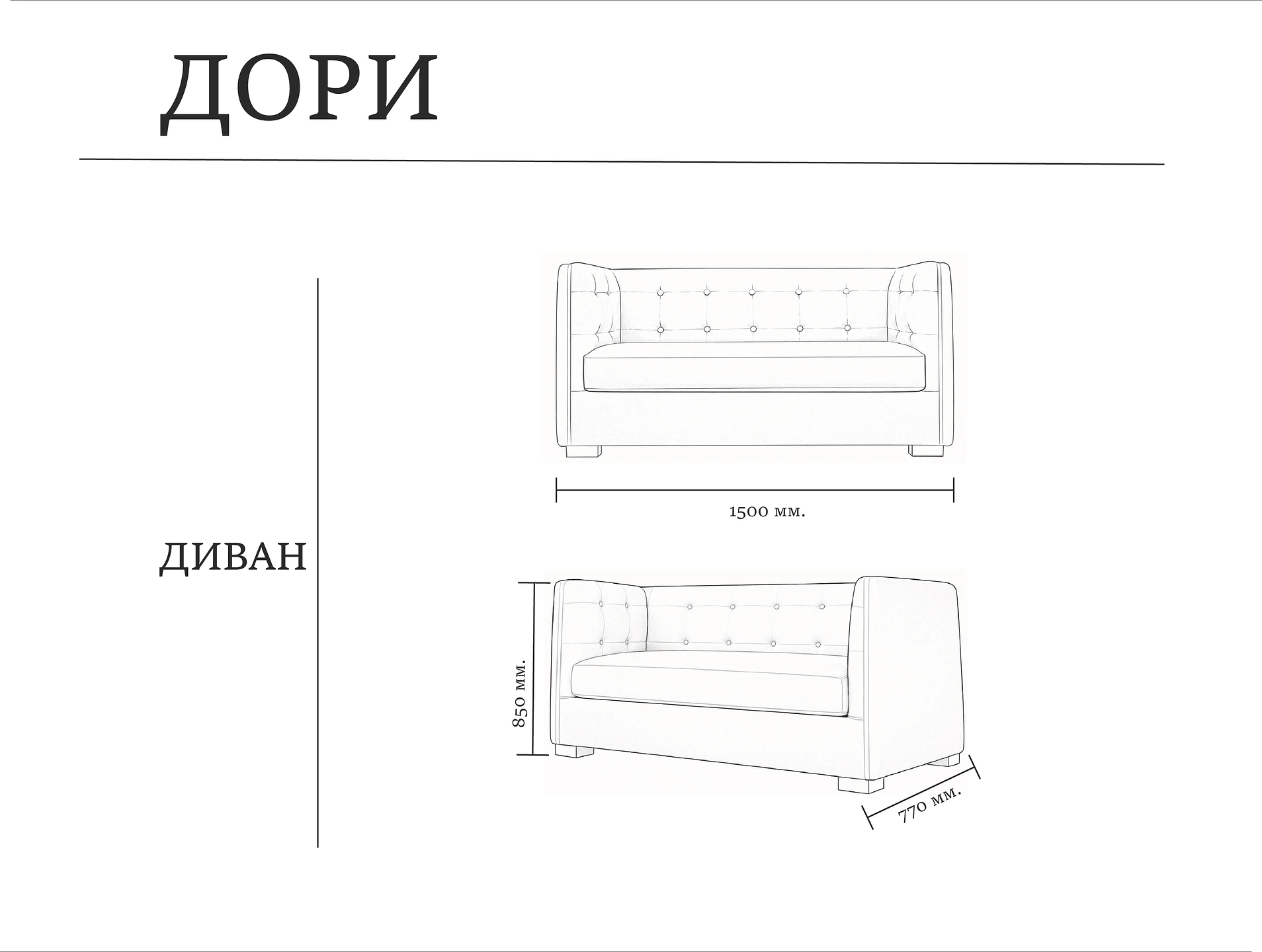 Диван «Дори» — компактная и элегантная модель с мягкими округлыми формами. Спинка украшена аккуратной декоративной стяжкой с пуговицами, что придаёт изделию изысканный и уютный характер. Плавные линии подлокотников и лаконичный силуэт делают диван универсальным решением для современных и классических интерьеров. «Дори» идеально подойдёт для гостиной, кухни или зоны ожидания, создавая атмосферу комфорта и стиля.